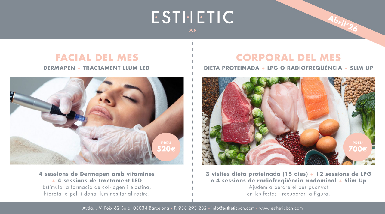 La dieta podem acompanyar-la de tractaments específics corporals, bé LPG per a un remodelat global o bé de la combinació de 4 sessions de radiofreqüència abdominal + 4 sessions de Slim UP per a reforçar la musculatura abdominal i donar tensió a la pell d’aquesta zona tan delicada.